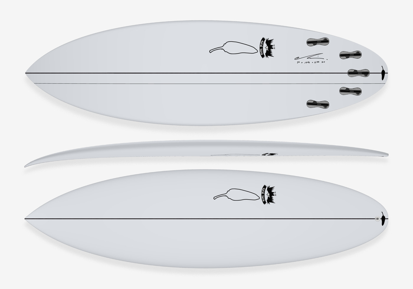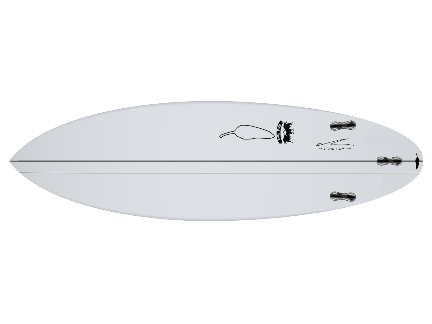 O set com 5 plugs provou que este modelo pode atuar em ondas pequenas e tamb?m ondas maiores. Resumindo, projetamos essa prancha baseando na Toucan, a prancha favorita de Mitch Coleborn, a qual surfava com uma 5'4'' a 5'6''.