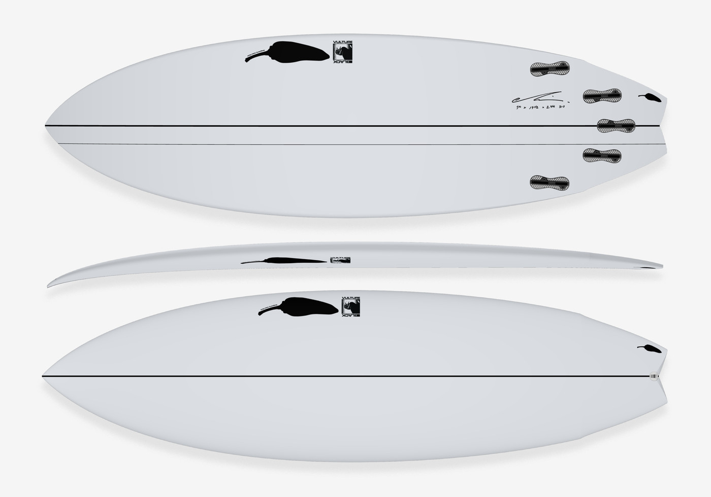 Deixe te explicar: A Black Vulture tem o bico mais cheio, com mais volume abaixo do peito e um outline mais largo. O wide point (parte mais larga da prancha) ? um pouco mais para cima, dando um bom volume abaixo do peito e tamb?m na base dianteira quando estiver surfando, tornando uma prancha uma m?quina de pegar ondas (muito parecida com o volume da Rare Bird). A rabeta Swallow tem um bump puxando a rabeta para dar mais drive, combinando com um single concave para um vee na rabeta, resultando em uma prancha que vale cada centavo.