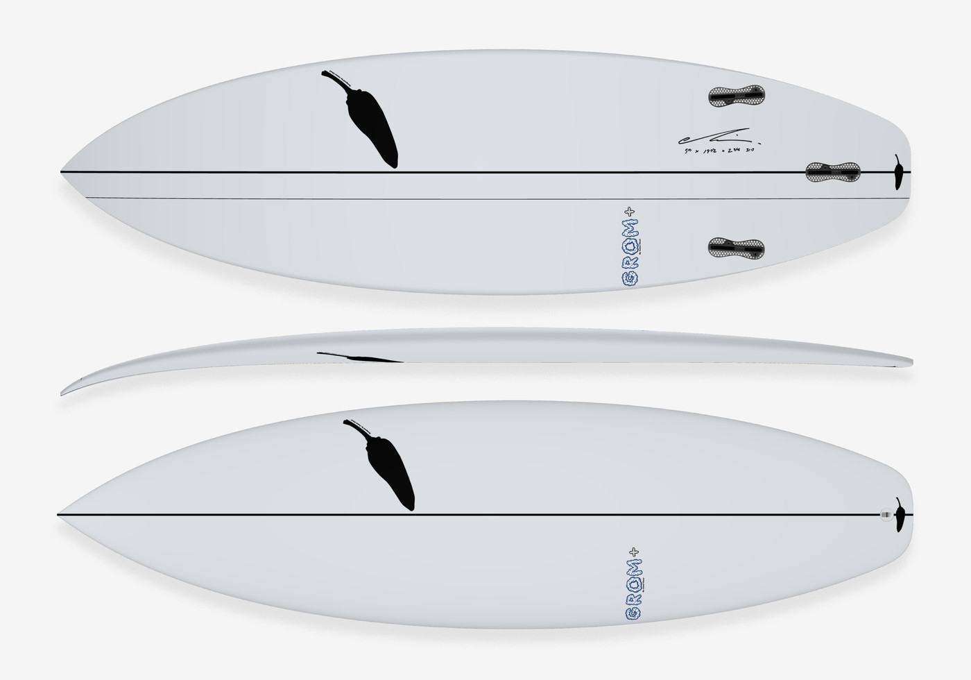 Digam olá para a melhor versão da nossa Grom, a Grom Plus. O design evoluiu por testes feitos pelos nossos riders ao longo dos anos, como: Laura Enever, Matt King e o super mini-Kobi Clements. Basicamente aumentamos o bico e a rabeta de uma forma uniforme, permitindo que possa pegar uma prancha até 4 polegadas menor que a sua atual. A rabeta Squash permite velocidade e estabilidade. Com o outline mais arredondado - a principal diferença da Grom anterior - virar a prancha para manobras fica mais fácil.